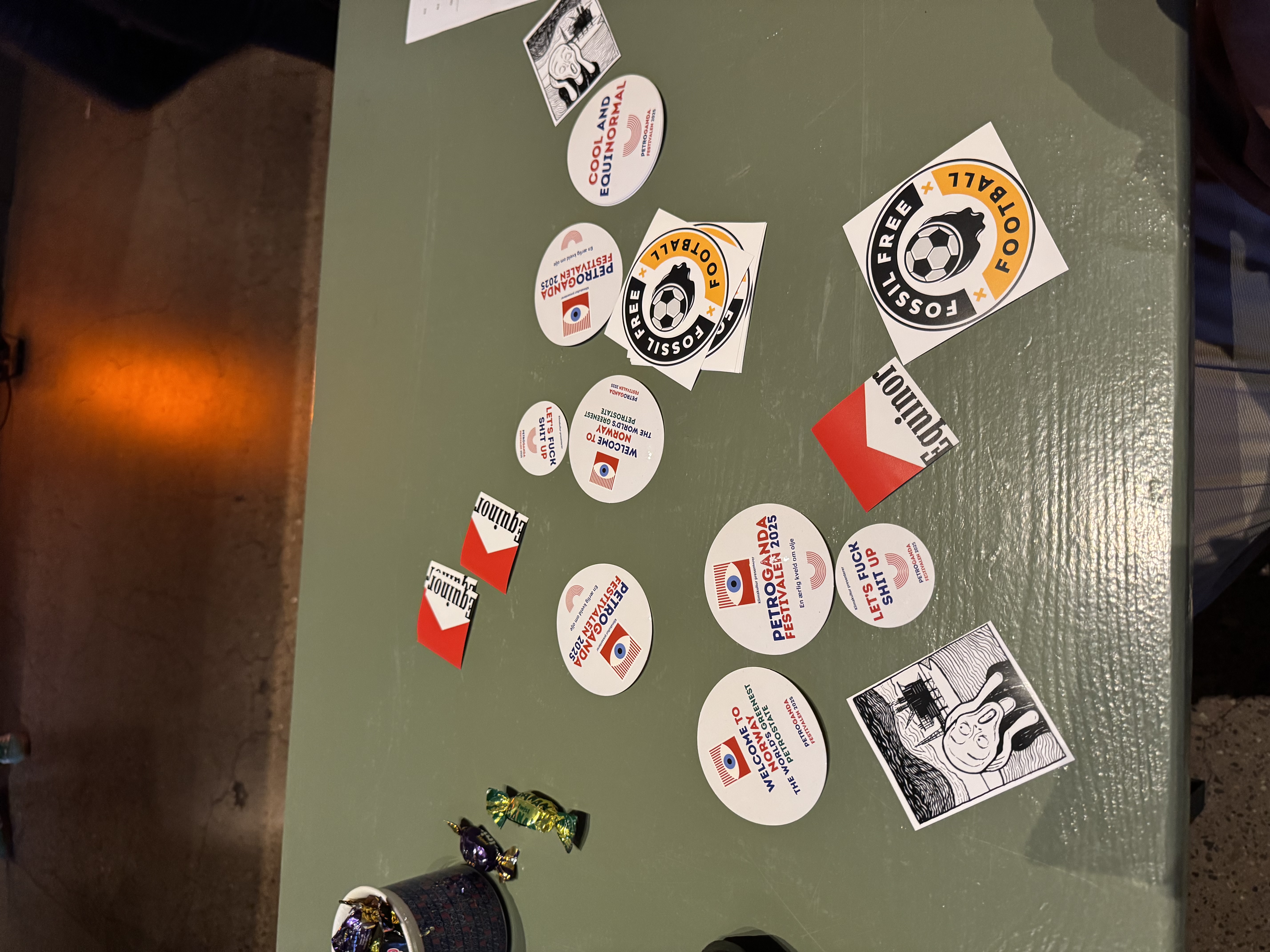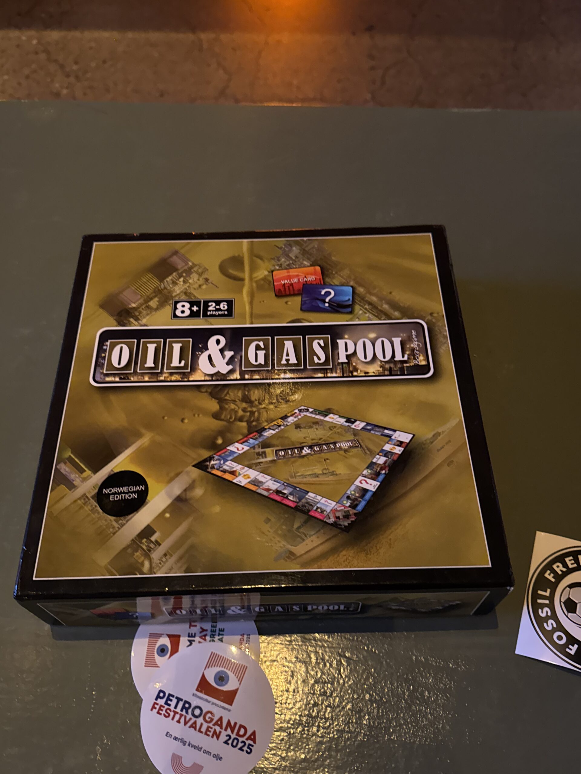 I løbet af aftenen blev der fremhævet en stribe absurde eksempler på fossilindustriens særlige indflydelse i samfundet. Blandt dem var Matador-lignende brætspil “Oil and Gas Pool” udviklet af Statoil (nu Equinor) med reklamer i spilleguiden, undervisningsspillet ‘Energy Town’ støttet af Equinor samt tv-serien ‘Lykkeland’, der skildrer etableringen af den norske olie- og gasindustrien i et meget favorabelt, ja, næsten helligt skær.